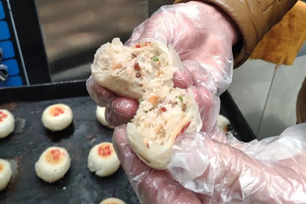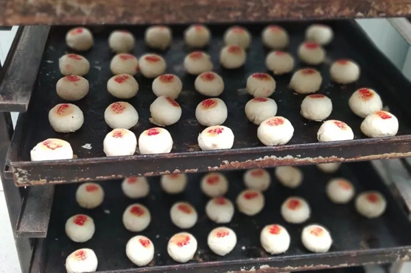 走进生产车间,浓郁的糕点香气扑面而来,负责人张更心热情地拿出刚烤出的精品果仁水晶饼让记者品尝。水晶饼通体以白色为主,起皮掉酥,上面一层焦黄,用胭脂红印制的“香村水晶饼”五个字点缀其中,吃起来软软糯糯、酥香绵长。